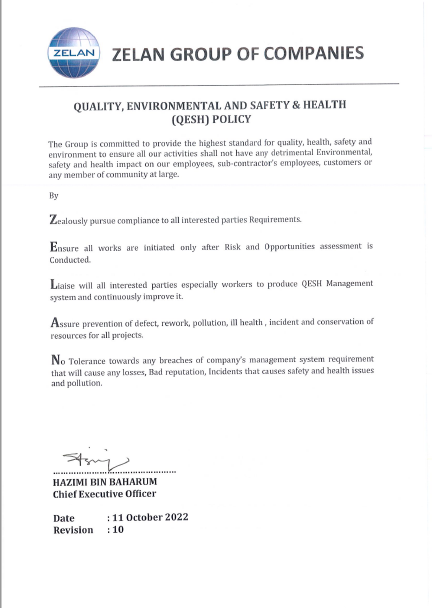 The Group is committed to provide the highest standards for quality, health, safety and environment to ensure all our activities shall not have any detrimental environmental, safety and health impact on our employees, sub-contractor’s employees, customers or any member of community at large.